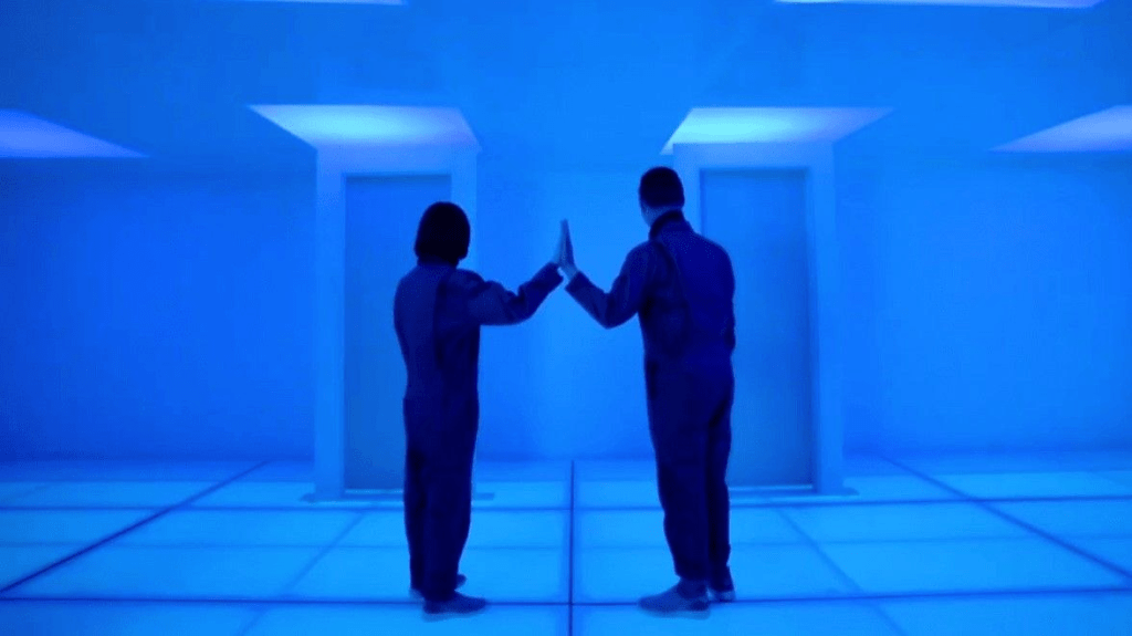 When Aaron & Erin are told by the surprise VHS orientation tape that they’re avatars in some, “digital corporate hell”, followed by the appearance of a single door out of the room, there’s a realisation: only one of them can leave.