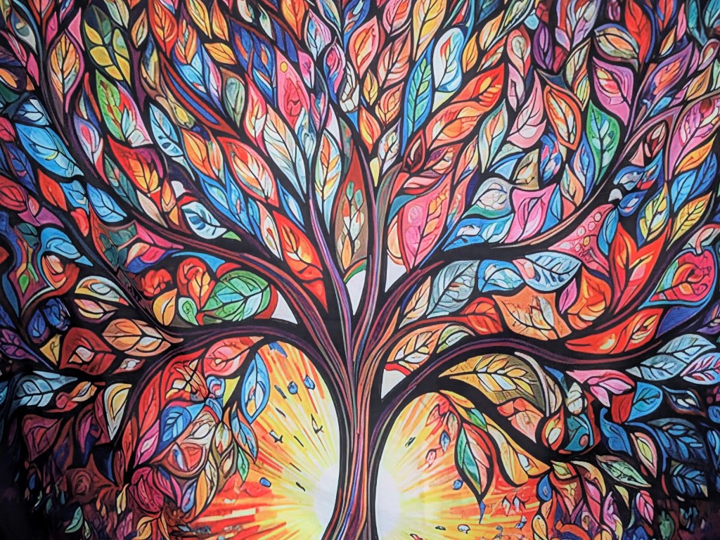 The header image for this site is a wallhanging that’s brought me back to myself, and been the background for us finding one another again so many times these last couple of years. When we’re working together, and feelings can co-exist, and shift naturally – it feels like the entire world goes from monochrome to glorious technicolour.